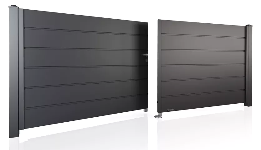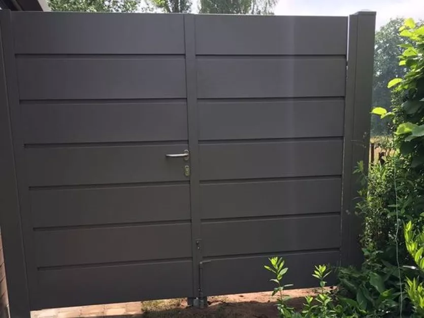 - Handmatige poort is uitgerust met een grondgrendel, 2 poortvangers en inbouwslot.