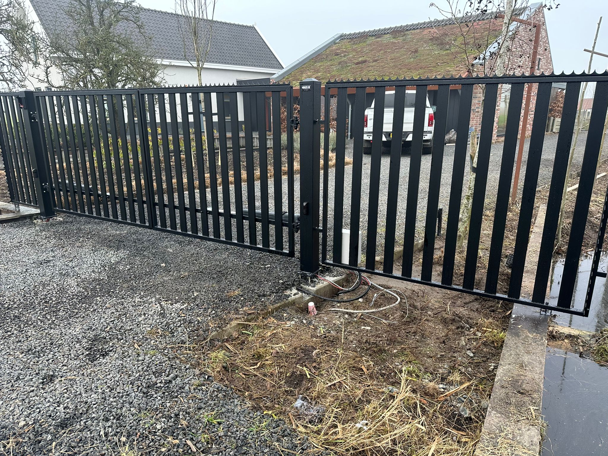 Door te kiezen voor een modern design met subtiele details ontstaat een tijdloze uitstraling die zowel functioneel als stijlvol is. De poorten zorgen voor een duidelijke en veilige afsluiting van beide opritten zonder afbreuk te doen aan het totaalbeeld van de woning.